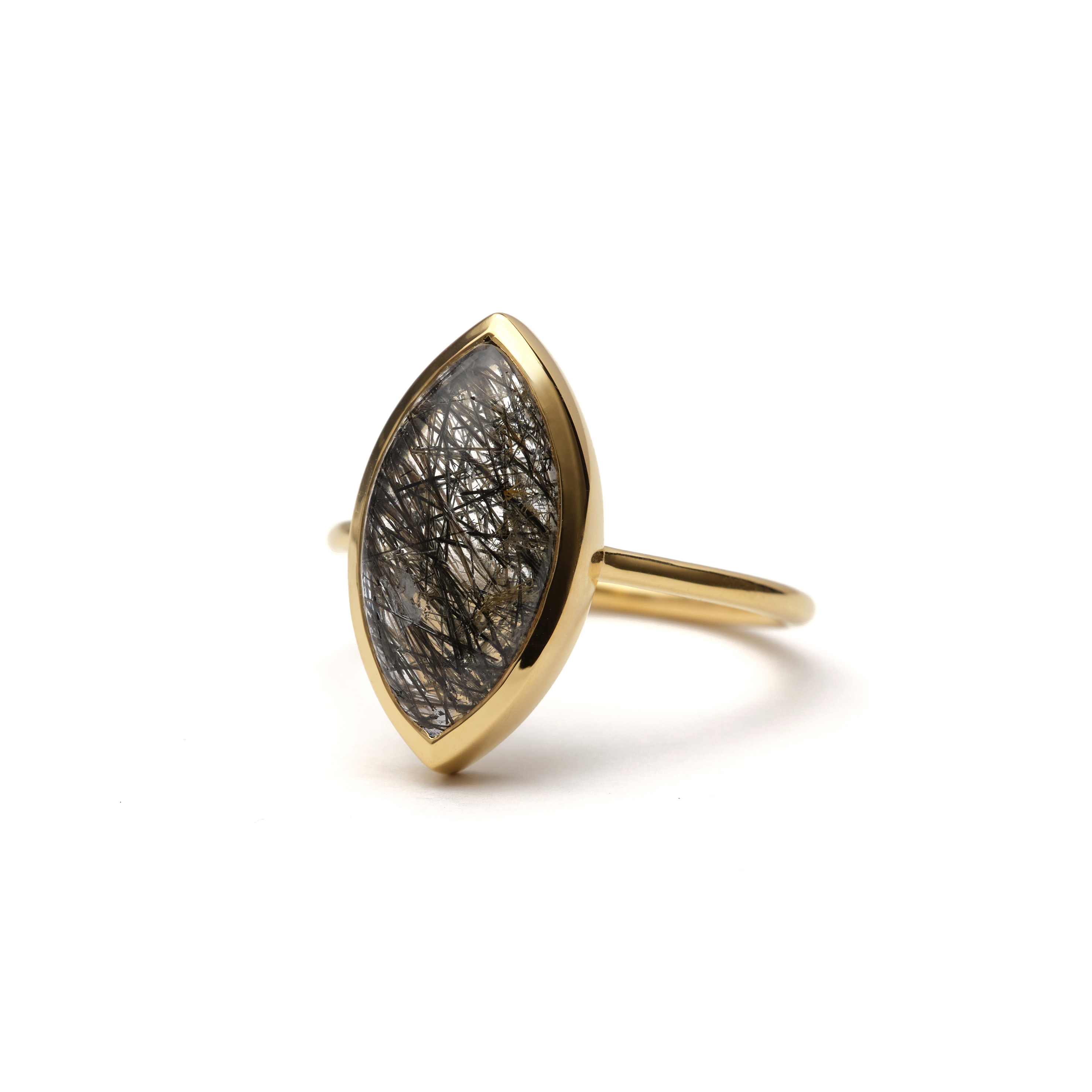 S925 SINGLE STONE THIN RING -BLACK RUTILE QUARTZ-
