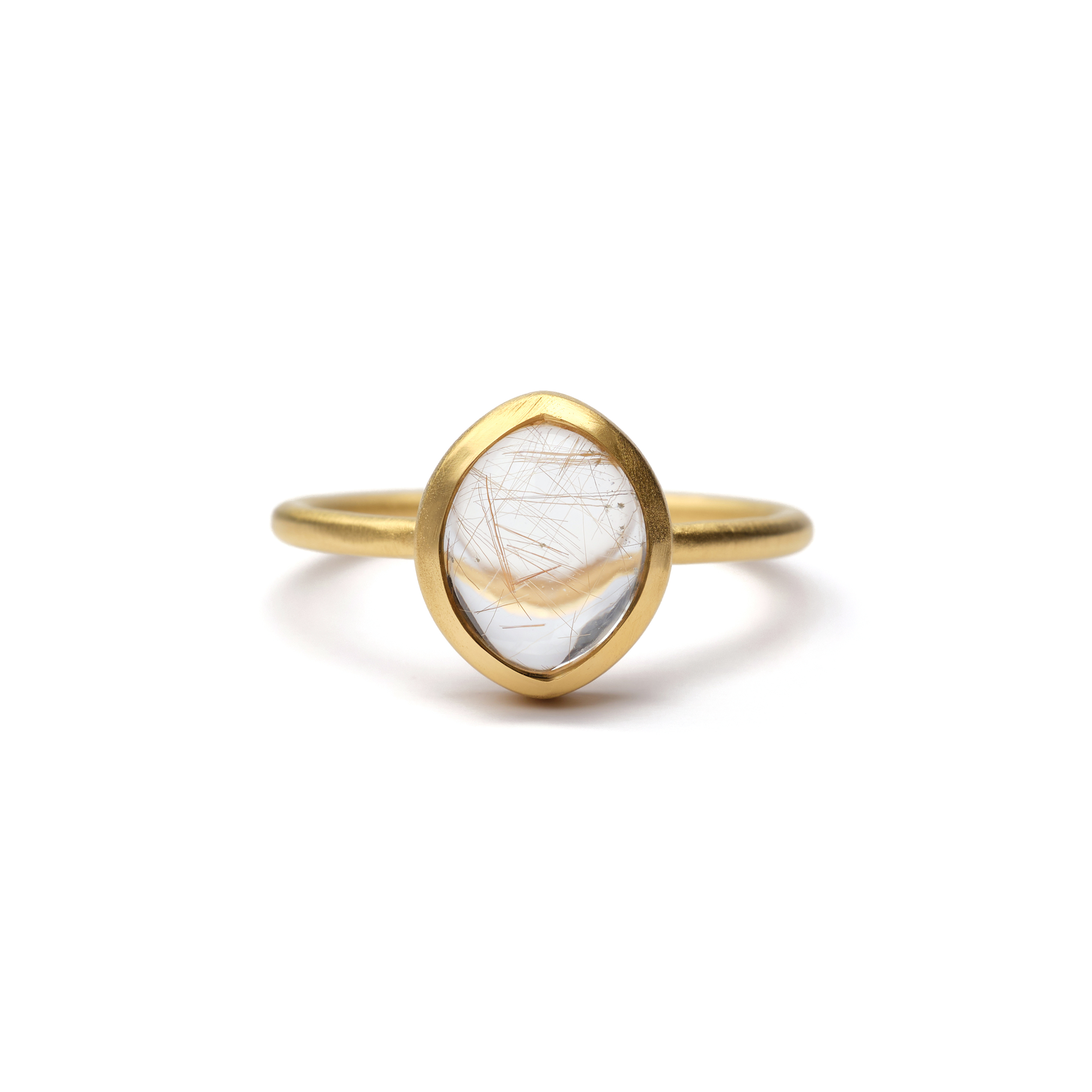 S925 SINGLE STONE MATT RING -GOLD RUTILE QUARTZ- 4