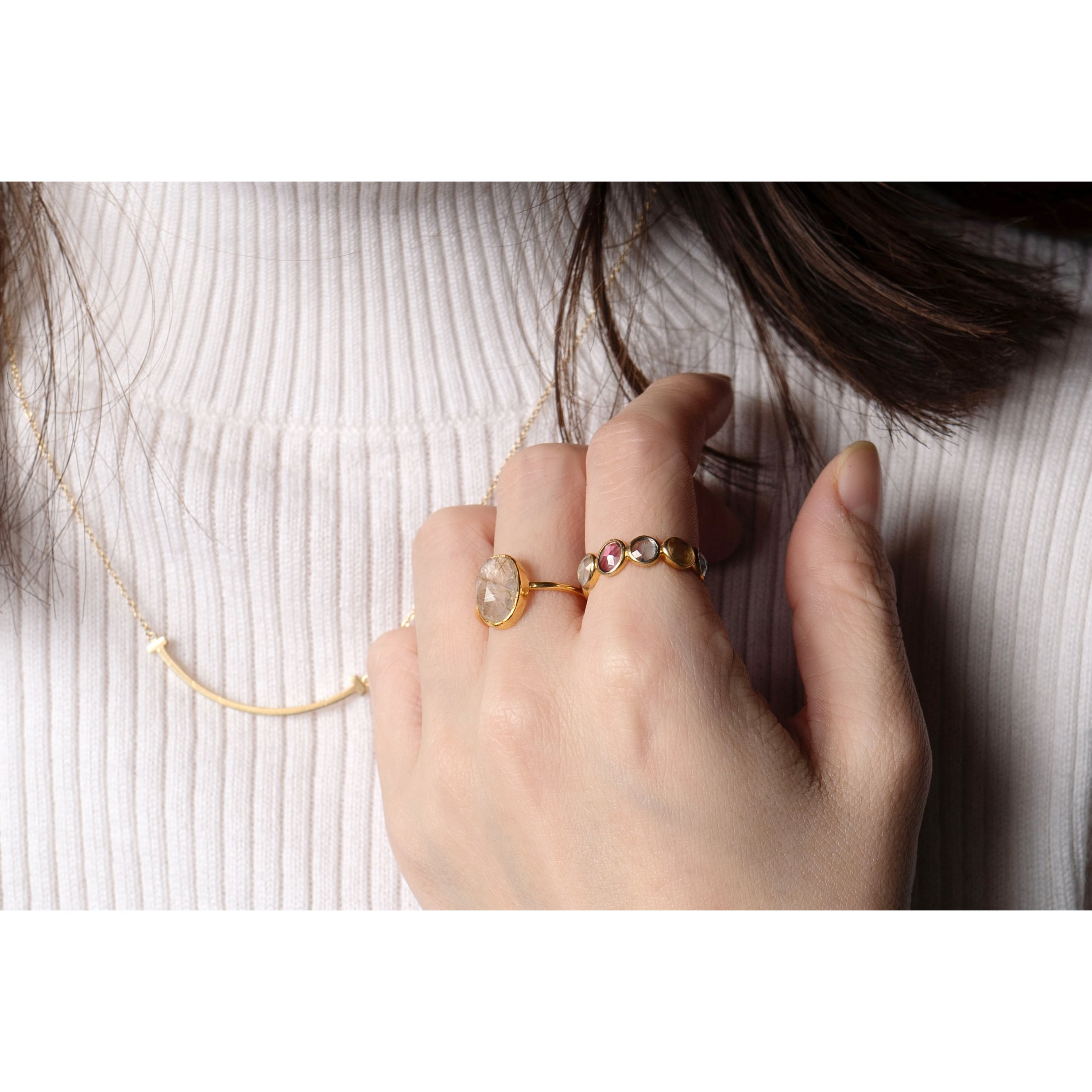 リングは1mmから1.2mmと非常に細く仕上げており、天然石を際立たせるデザインです。